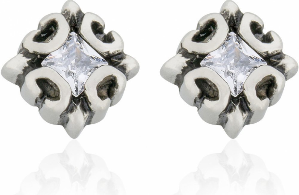 - Čirý kubický zirkon s briliantovým brusem upraveným pro čtvercový tvar kamene.