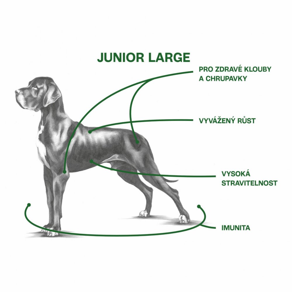 Kompletní krmivo pro mladé psy všech velkých a obřích plemen ve věku od 3–24 měsíců.