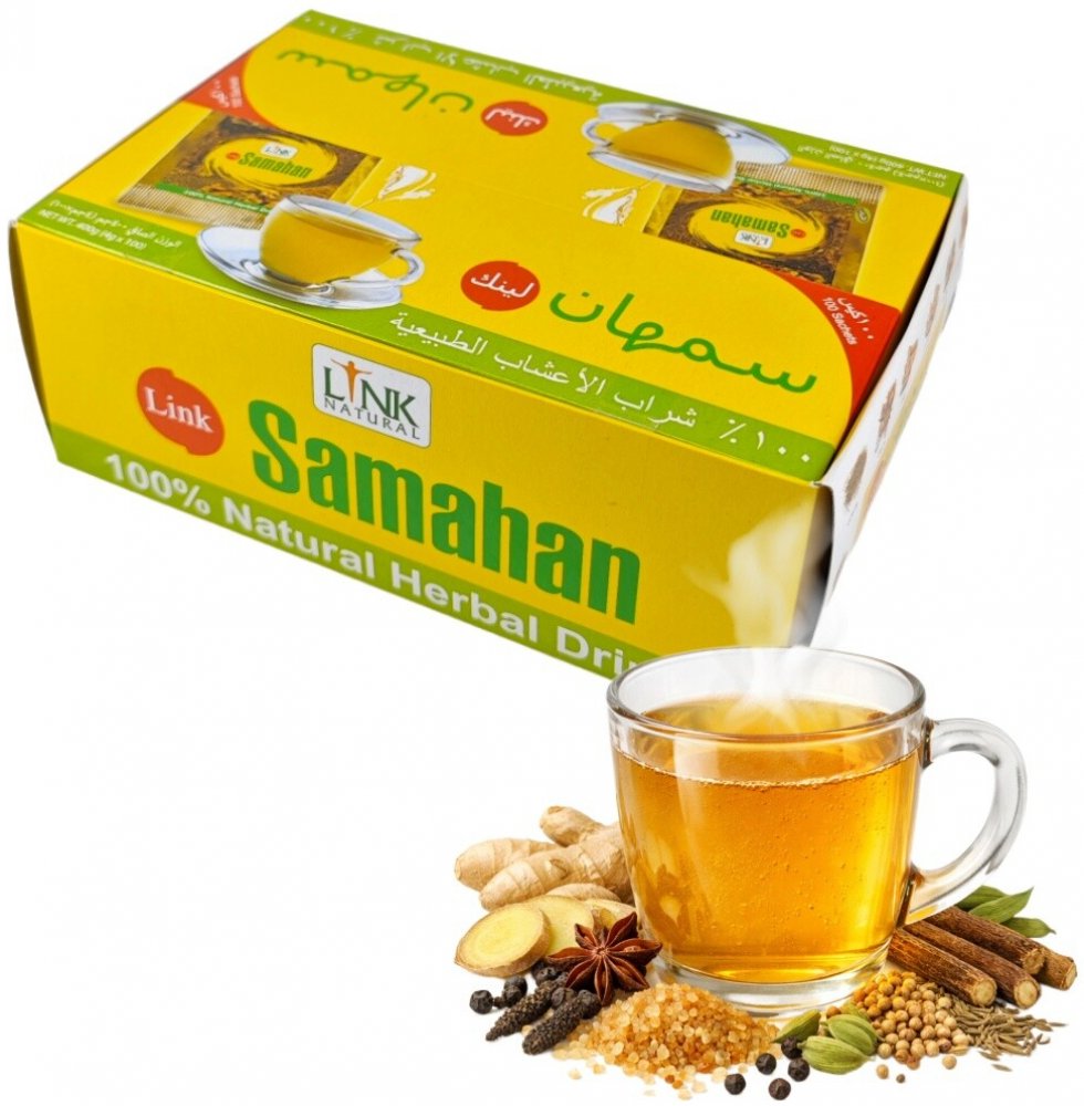 Horký nápoj Samahan je směsí 14 bylin a koření, které tvoří jedinečný mix používaný především při chřipce či nachlazení. Jeho složení podporuje normální funkci dýchacího systému, obranyschopnost a celkovou odolnost a vitalitu organizmu. Rozšiřuje také cévy, díky čemuž prohřívá celé tělo a navrací vitalitu. Horký nápoj také pomáhá tělu doplnit potřebné tekutiny.