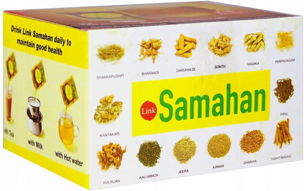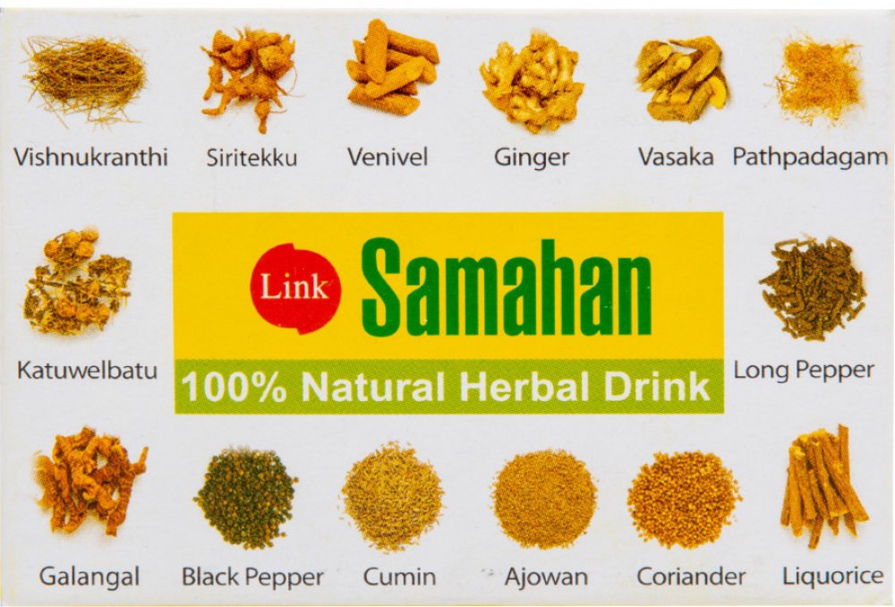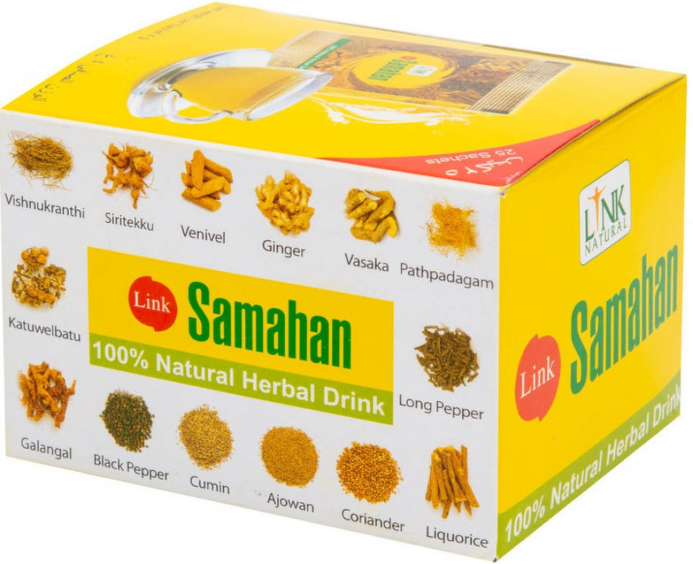 Samahan je koncentrovaný, 100% přírodní rostlinný přípravek, který patří na Srí Lance mezi prastaré receptury známé jako „Peyava“. Neobsahuje žádná barviva ani konzervanty. Ájurvéda doporučuje pravidelné pití čaje Samahan jako prevenci proti dýchacím onemocněním i pro udržení celkového zdraví, obzvláště v zimním období.