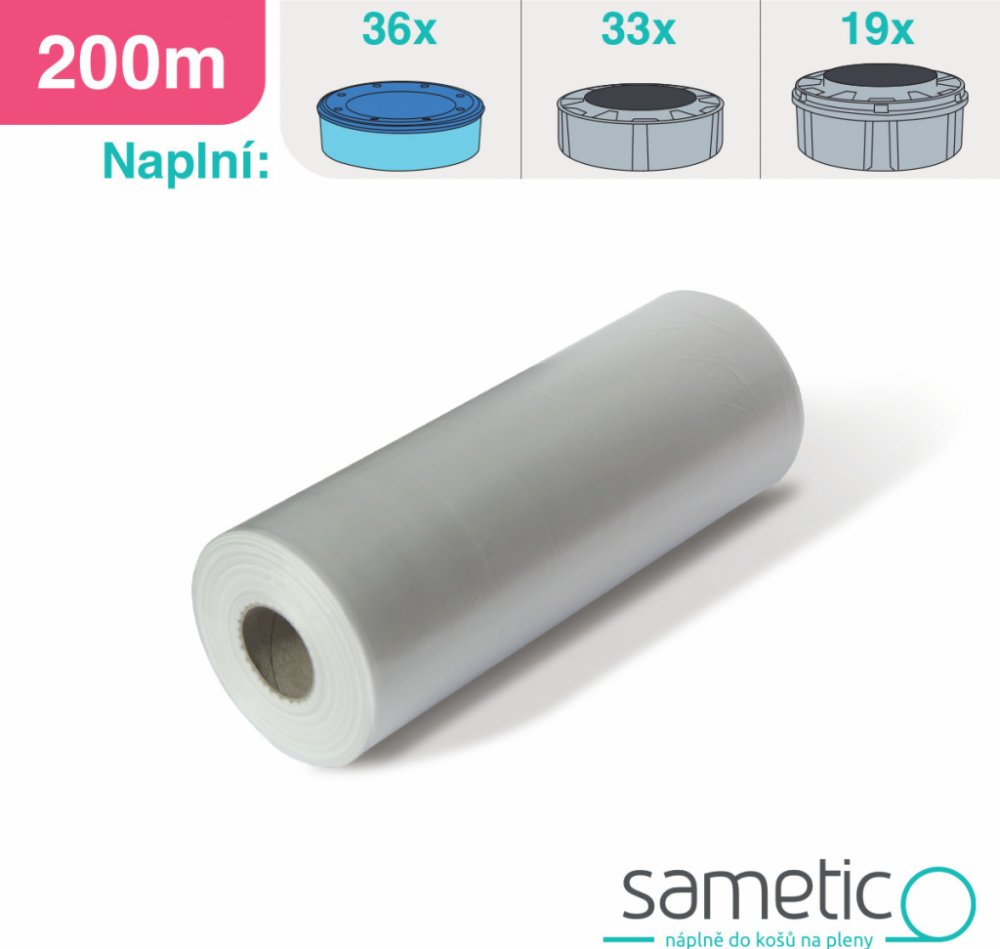 Sametic umožňuje bezdotykové zabalení použitých plen a představuje levnější variantu originálních fólií do košů na plenky od značek Tommee Tippee Sangenic Simplee, Sangenic Twist & Click, Sangenic Hygiene Plus, Sangenic Tec, MK3, MK4, MK5, Nappy Wrapper, Nappy Wrapper Maxi, Nursery Essentials, AngelCareCaptiva, Captiva Deluxe, Captiva Comfort i Litter Locker I, Litter Locker II, Litter Locker Plus...