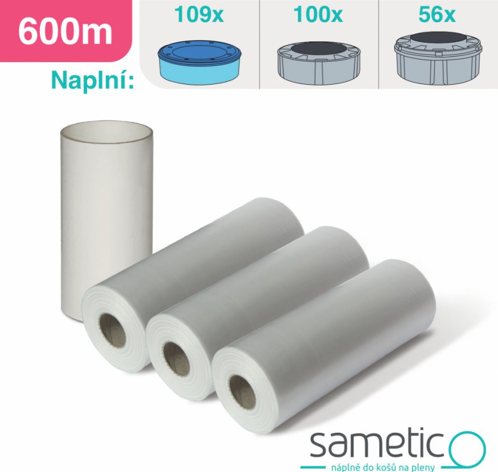 Sametic umožňuje bezdotykové zabalení použitých plen a představuje levnější variantu originálních fólií do košů na plenky od značek Tommee Tippee Sangenic Simplee, Sangenic Twist & Click, Sangenic Hygiene Plus, Sangenic Tec, MK3, MK4, MK5, Nappy Wrapper, Nappy Wrapper Maxi, Nursery Essentials, AngelCareCaptiva, Captiva Deluxe, Captiva Comfort i Litter Locker I, Litter Locker II, Litter Locker Plus...