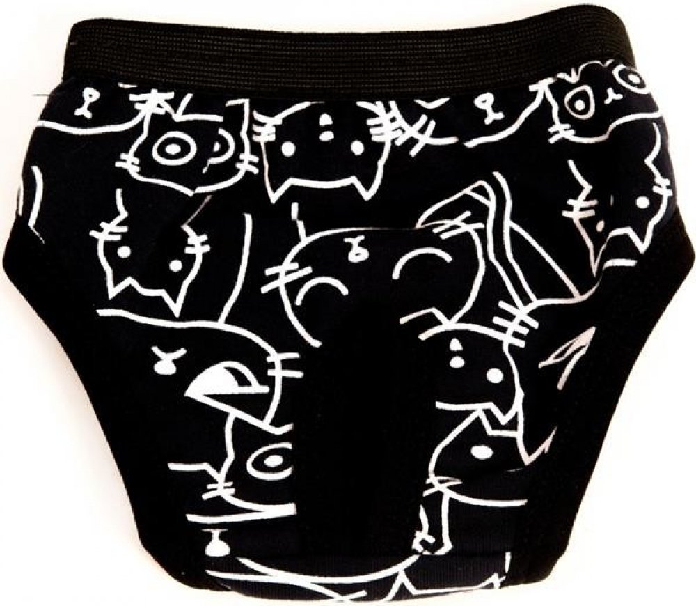 Díky pružným okrajům a v pase našité měkké gumě se snadno a rychle oblékají i svlékají, perfektně sedí a nijak fenku neomezují v pohybu. Samozřejmostí je otvor pro ocásek a uvnitř síťka k zachycení vložky.