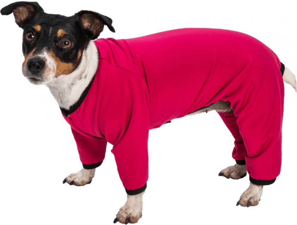 Střih je navržen tak, aby chránil všechny důležité partie těla včetně všech končetin. Psí kombinéza je anatomicky tvarovaná a psa tak neomezuje ve volném a přirozeném pohybu. Okraje jsou obšity pružným lemem, proto neodstávají, ale výborně drží na svém místě a teplo tak neuniká ven. Oblékání kombinézy je díky elastickému materiálu velmi snadné a rychlé - zapíná se pod krkem pomocí malých cvočků. Obleček je velmi příjemný na omak a zaručuje pro psa 100% komfort při nošení.