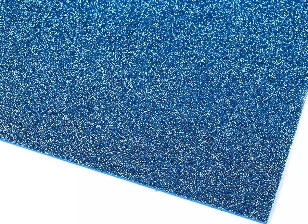 Samolepicí pěnová guma Moosgummi s glitry 20x30 cm - 2 ks Barva: Modrá