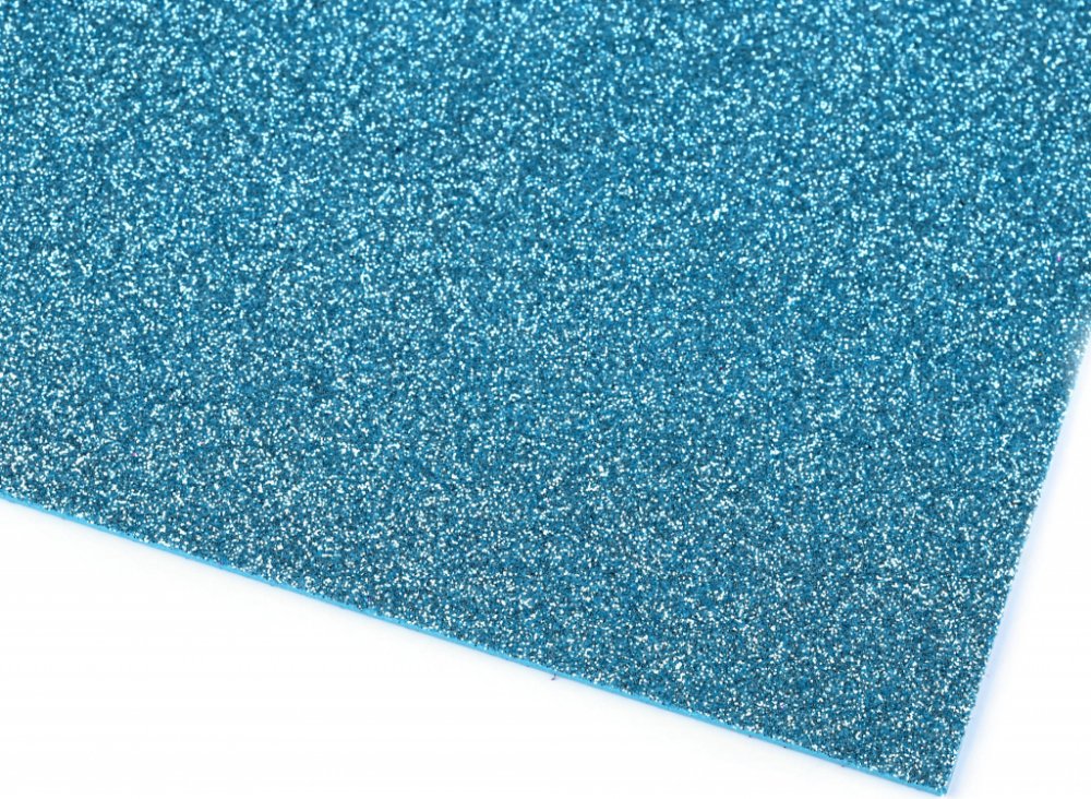 Samolepicí pěnová guma Moosgummi s glitry 20x30 cm - 2 ks Barva: modrá světlá