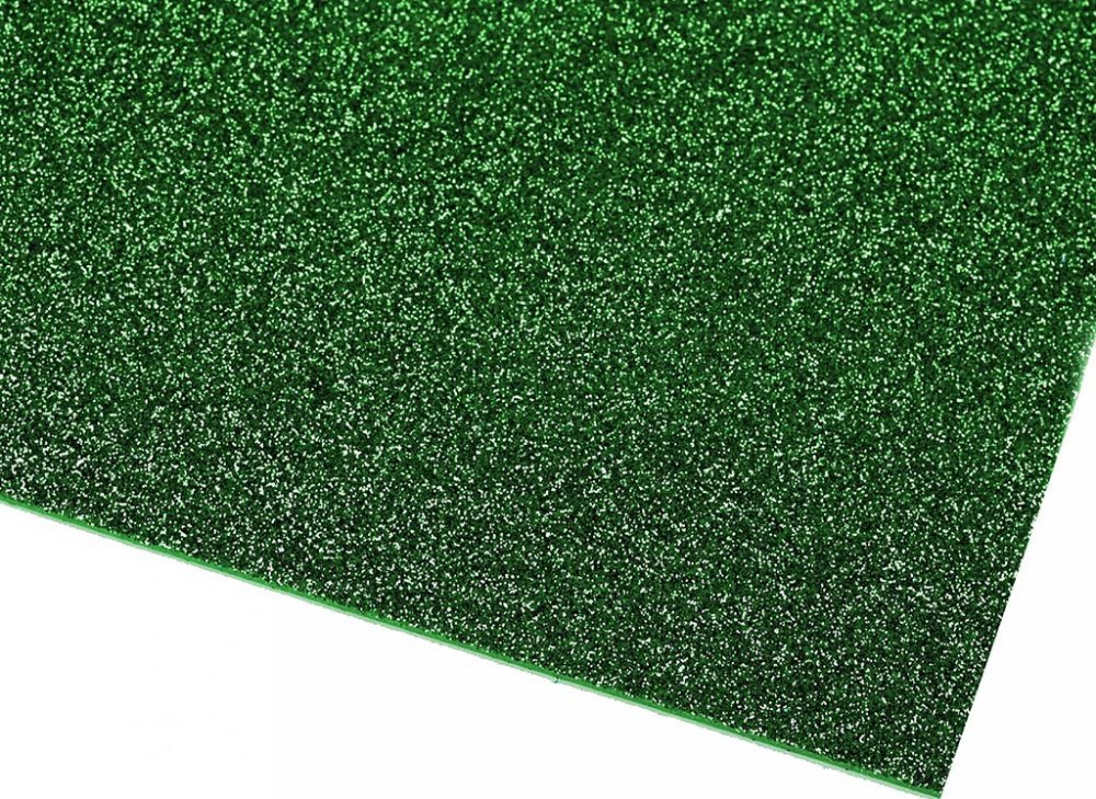 Samolepicí pěnová guma Moosgummi s glitry 20x30 cm - 2 ks Barva: Zelená