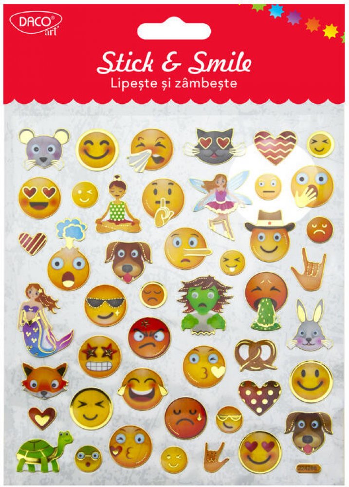 Samolepky smajlíci 2 Dětské samolepky představují jednu z možných variant výzdoby a dekorace dětských pokojů, nebo si děti mohou ozdobit třeba školní pomůcky. Rozměr balení: 10 x 22 cm.
