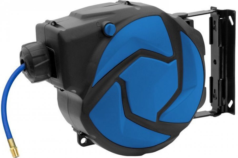 Profesionální automatický hadicový naviják / buben pro upevnění na stěnu, strop nebo jinou konstrukci s hadicí na stlačený vzduch 10 m a novým systémem aretace i navíjení.