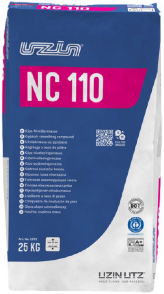 UZIN NC 110 je samorozlévací sádrová nivelační hmota navržená pro všechny typy podlahových krytin, včetně parket. Díky svému vynikajícímu rozlivu a téměř nulovému pnutí vytváří hladký povrch, ideální pro pokládku široké škály podlahových materiálů. Tento produkt se doporučuje pro vrstvy o tloušťce 0–30 mm a nabízí extrémně rychlý průběh schnutí.