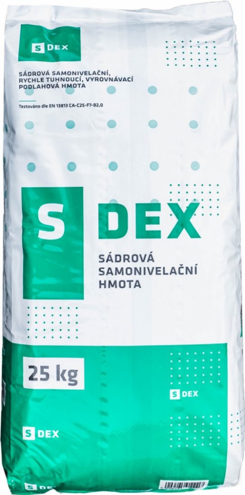 Sádrová samonivelační hmota S-DEX je určená pro aplikaci v interiérus rychlým schnutím a minimálním vnitřním pnutím během vysychání.Tato hmota je vhodná pro vyrovnání suchého, kritického i nestabilníhopodkladu v suchém prostředí, před pokládkou podlahových krytin. Jevhodná na potěry s podlahovým topením.Není vhodná pro pružné podklady, jako například dřevěný podklad a anijako finální vrstva. Umožňuje variabilní dávkování vody podle tloušťkyvrstvy.