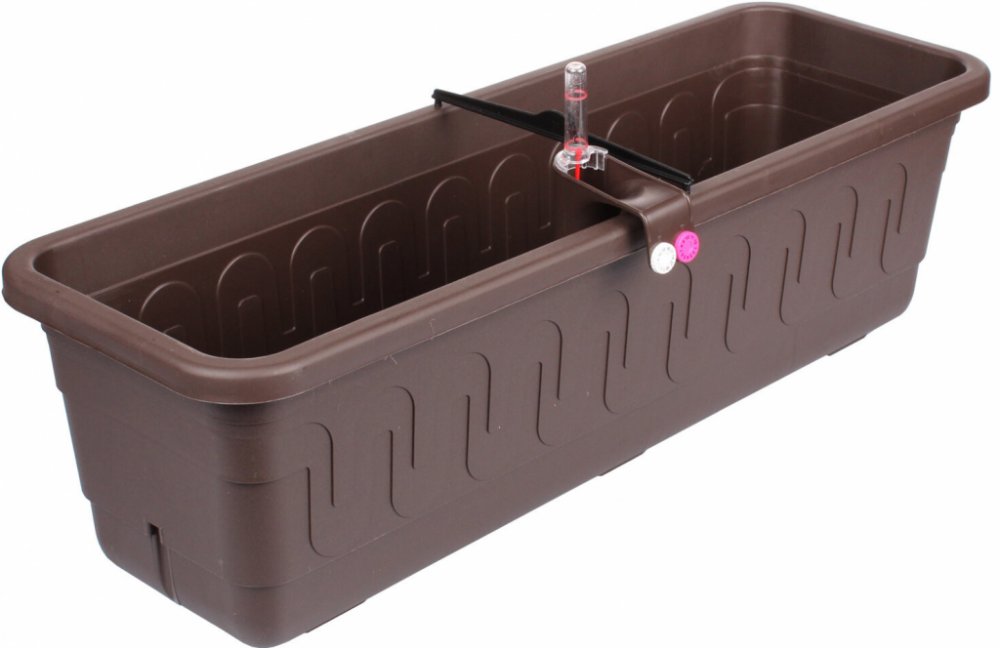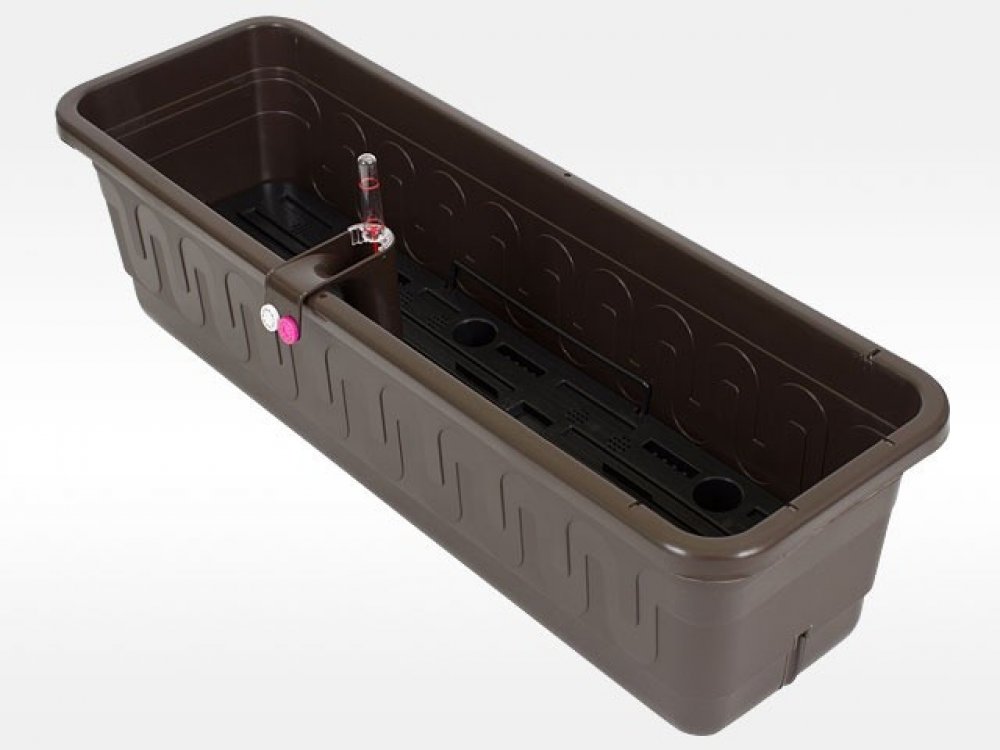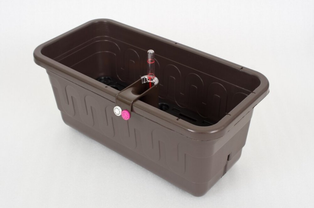 Samozavlažovací plastový truhlík v bezknotovém provedení a s volitelnými otvory pro odpad. Má 2 ergonomické barevné datumovky pro zaznamenávání intervalů zalévání a hnojení. Je vybaven otvory v roštu pro vhodné umístění napájecího dílu s barevně značenými zátkami. Má dvoukomorové řešení zajišťující nepřetržité měření hladiny vody, a to i při nalévání. Rozměrné zásobníky na vodu zajišťují dlouhodob...