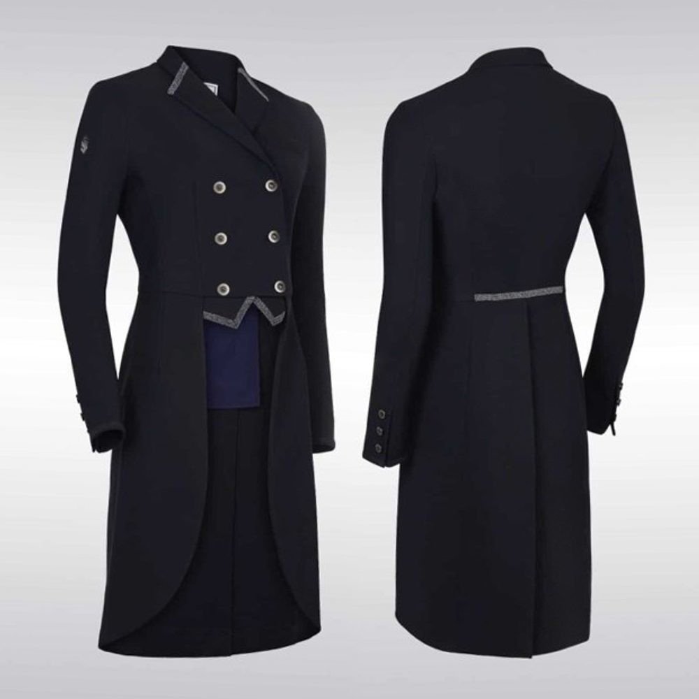 Drezurní frak Crystal Fabric je vyroben z vysoce prodyšné, pružné, lehké a odolné technické tkaniny pro optimální pohodlí. Vnitřek fraku je navržen ze strečového materiálu a síťoviny, aby byla zajištěna vynikající ventilace a maximální volnost pohybu. Na límci, zádech a cípech je zdoben 'Crystal' látkou Swarovski®. Frak je nejen nádherné napohled, ale také velice funkční díky systému regulace vlhk...