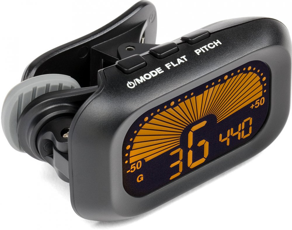 klipová horizontální chromatická ladička ● režimy ladění: chromatický, kytara, basa, housle, ukulele C, ukulele D ● horizontální podsvícený LCD displej ● integrovaný držák s možností nastavení v rozsahu 360º pro dokonalé zobrazení ● piezo senzor kalibrovaný vibracemi, velký rozsah od A410 do A450Hz ● snadné podladění díky funkci flat/drop tuning ● rychlá odezva v reálném čase pro přesné ladění ● napájení: 1 CR2032 baterie (přibalena)