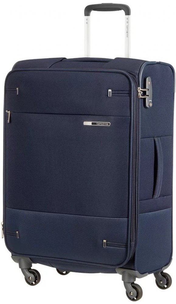 Cestovní kufr Samsonite BASE BOOST 66 cm v modré barvě na čtyřech kolečkách. Kolekce Base Boost je charakteristická hodnotami jako jsou kvalita, ochrana a lehkost. Značí ho trendy moderní vzhled ve stejných barevných odstínech.