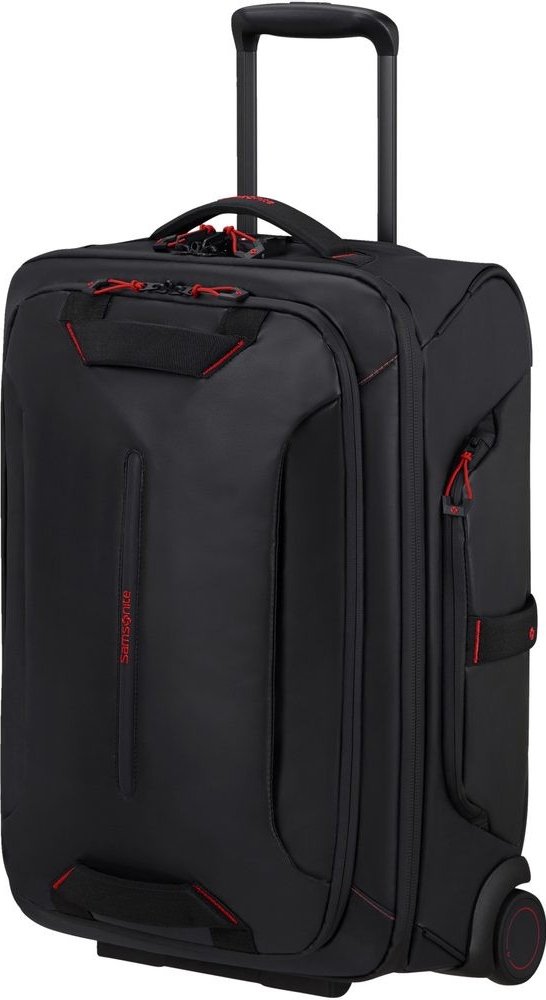 Cestovní taška na kolečkách Samsonite ECODIVER DUFFLE 55 kombinuje praktičnost se stylovým designem a byla vyvinuta se zvláštním důrazem na bezpečnost a pohodlí. Je vyrobena z recyklovaných materiálů a má voděodolný povrch, což z ní dělá perfektního společníka pro všechna vaše dobrodružství.