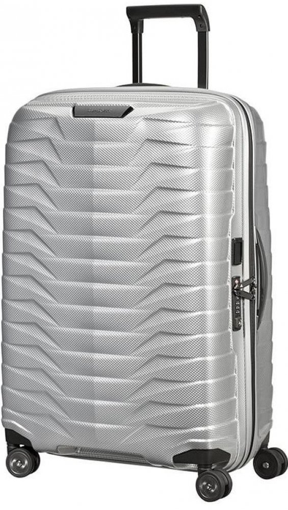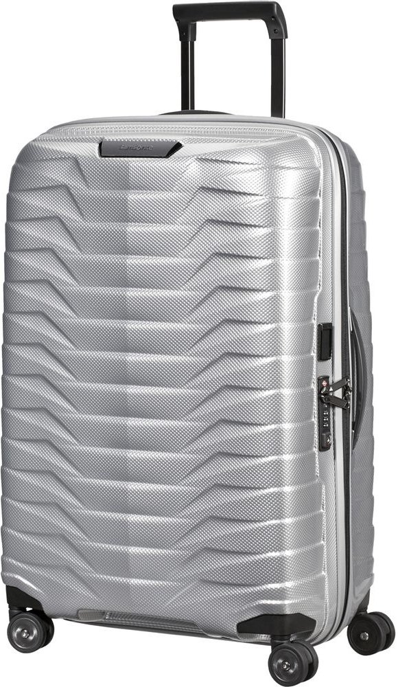 Cestovní kufr Samsonite Proxis 69 cm ve stříbrné barvě z exkluzivního vícevrstvého materiálu Roxkin, který je velmi odolný vůči nárazům a snadno se vrací do původního stavu.. Linie Proxis od značky Samsonite nově definuje standard pro lehká a velmi odolná zavazadla. Vyrobeno v Evropě.