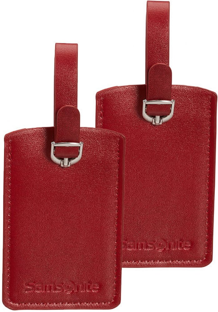 Sada dvou klasických černých visaček obdélníkového tvaru z umělé usně s odolným popruhem a kovovou přezkou pro připevnění visačky, identifikačním okénkem chráněným klapkou a vyměnitelným ID štítkem