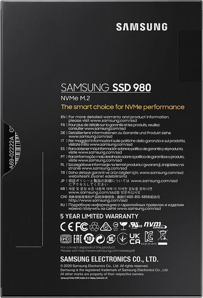 Samsung 1000 GB M.2 PCIe 3.0 x4 NVMe TLC pro hraní M.2 2280 3500 MB/s 3000 MB/s pro vysoký výkon 600.0 TB se střední výdrží černé Samsung 980 8 g 3500 MB/s 3000 MB/s