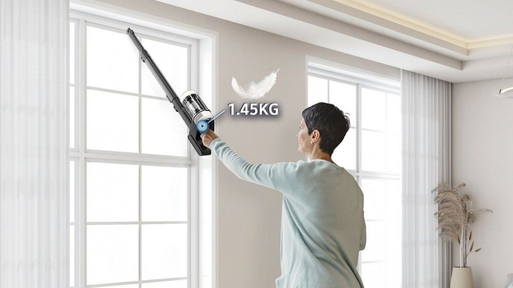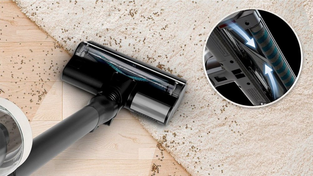 Tyčový vysavač, 2v1, bezsáčkový, objem nádoby 0,5 l, hlučnost 87 dB, příkon 1400 W, doba provozu 60 min, doba nabíjení 3,5 h, HEPA H13 filtr, hubice na tvrdé podlahy, LED osvětlení