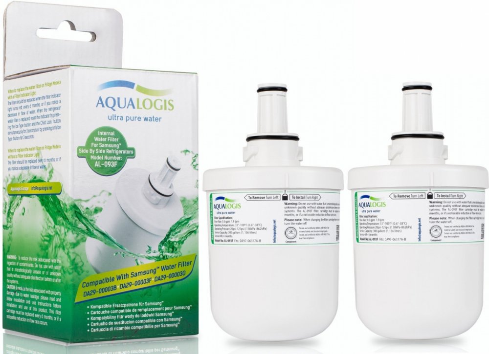 AL-093F - Aqua-Pure Plus Samsung DA29-00003FNáhradní vodní filtr Aqua-Pure DA29-00003F, pro dvoudveřovou chladničku SAMSUNG DA29-00003A* DA29-00003B *DA29-00003G, APP100 * HAFIN1 EXP * DA99-00494V * 4801 817 00592 * DA29-00003A * DA61-00159A-B *DA99-02131A * HAFIN2 EXP * DA99 02131A * AL-093F AL-093F Náhrada za Samsung HAFIN1 odstraňuje z vody následující látky:Olovo: 99,90 % při pH 8,5Rtuť: 96,60 % při pH 8,5Azbest: 99,92Benzen: 89,60 %P-dichlorbenzen: 99,90 %Cysty: 99,99Karbofuran: 98,70Chlor: 97,00 %Nepříjemný zápach a chuť: 97,00 %Zákal: 99,10Nečistoty (třída I): 97,60%* Všechny názvy značek jsou majetkem příslušných vlastníků. ochranné známky výrobků a modelů slouží pouze pro účely kompatibility.
