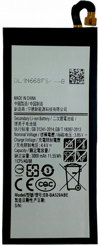 Toto zboží je vysoce kvalitní baterie pro váš Samsung EB-BA520ABE. Je ideální jako náhradní baterie za stávající nebo vadnou baterii Samsung EB-BA520ABE. Může také sloužit jako další náhradní baterie, když jste na cestách. Manipulace i nabíjení probíhá jako obvykle pomocí standardního síťového adaptéru/nabíječky. Elektronická ochrana proti přebití a zkratu nabízí vysoký ezpečnosti. Zpracováním vys...
