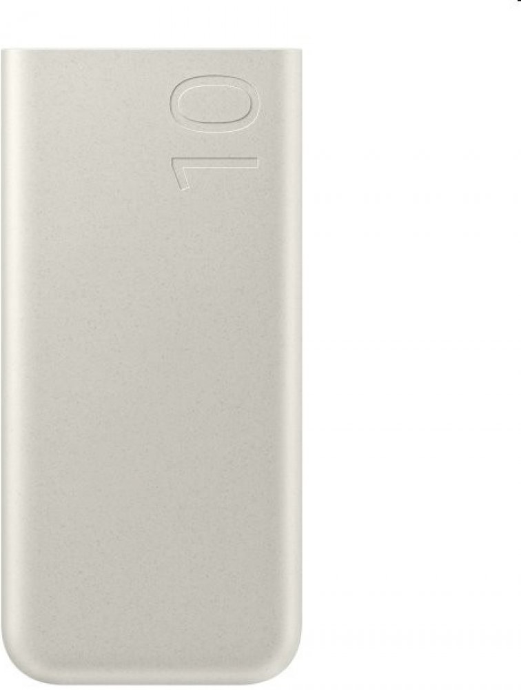 Powerbanka je v elegantní béžové barvě, která se hodí ke každému zařízení. Její povrch je jemně texturovaný, což zajišťuje příjemný úchop a zároveň dodává produktu moderní vzhled. Na povrchu najdete decentní logo Samsung, které je symbolem kvality a spolehlivosti.