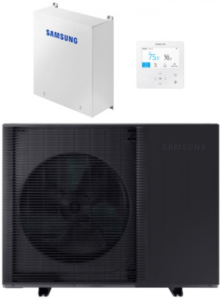 Samsung 8.0 kW vzduch - voda nedělená monobloková -30.0 °C 70.0 °C 42.0 dB A+++ univerzální pro rodinné domy s pokročilým chytrým ovládáním s externím zásobníkem s chlazením (reverzní chod) s chladivem R32