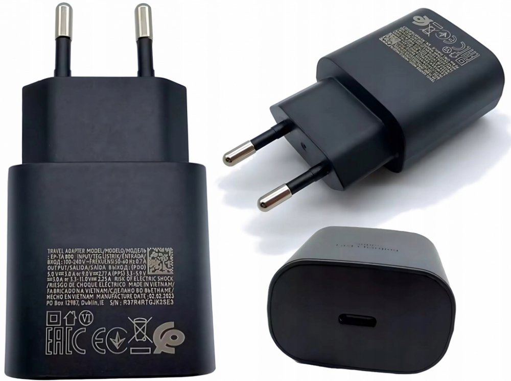 Samsung cestovní nabíječka do sítě s USB-C výstupem a maximálním výkonem 25W.