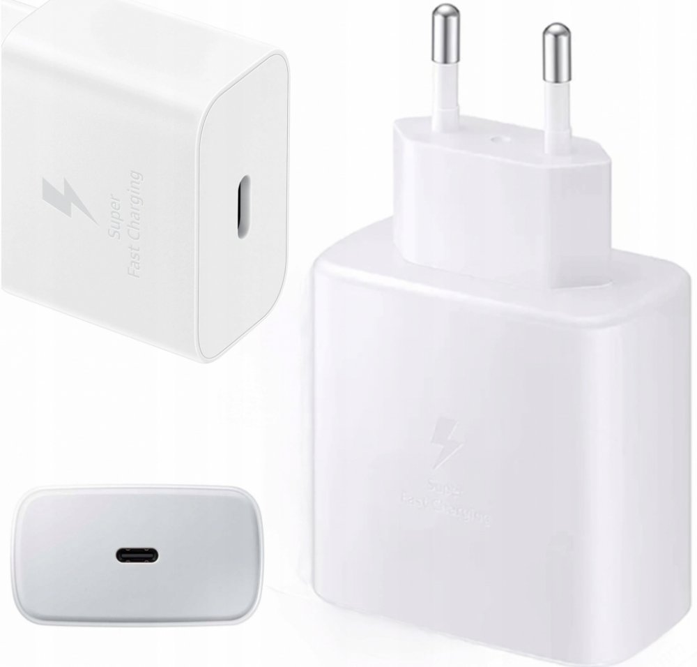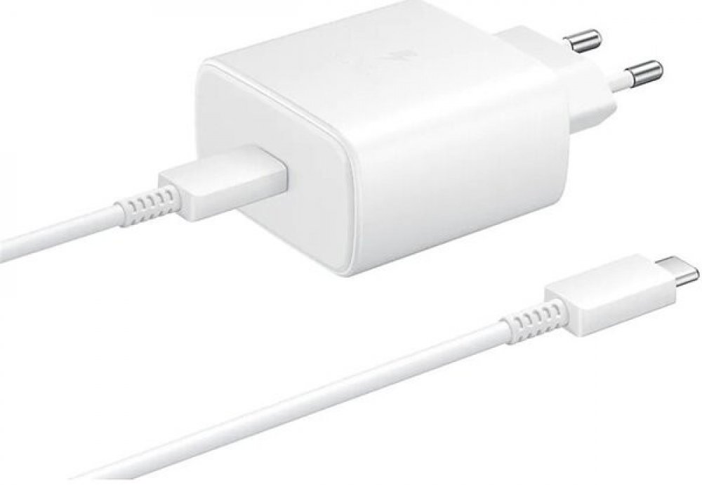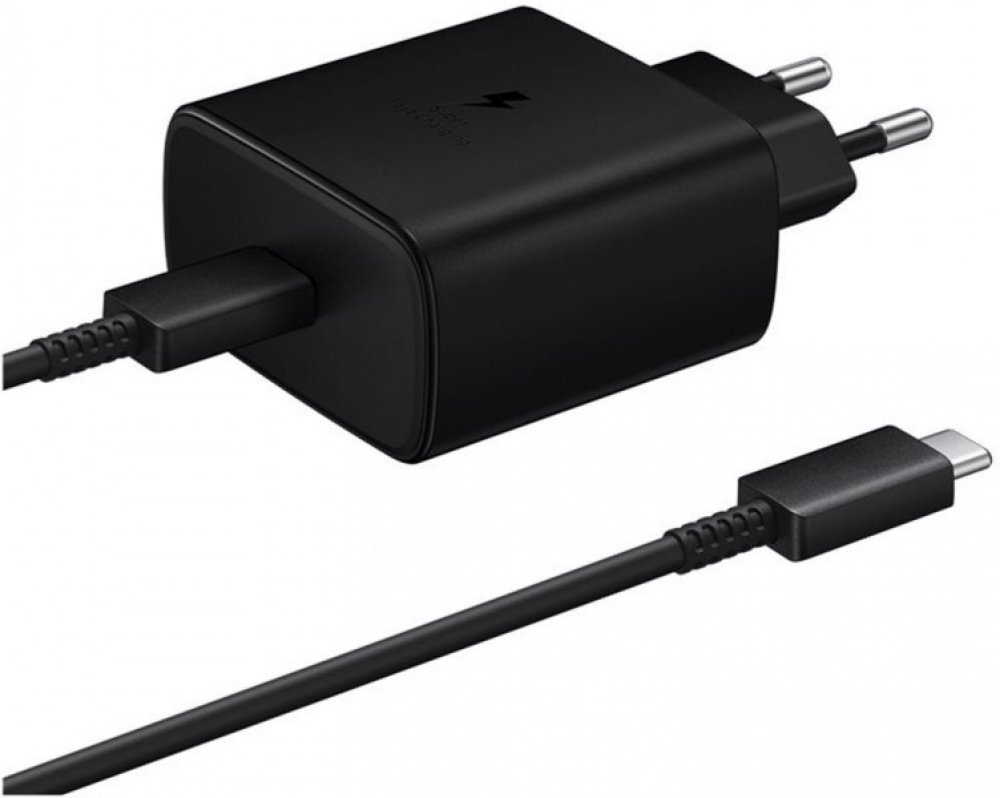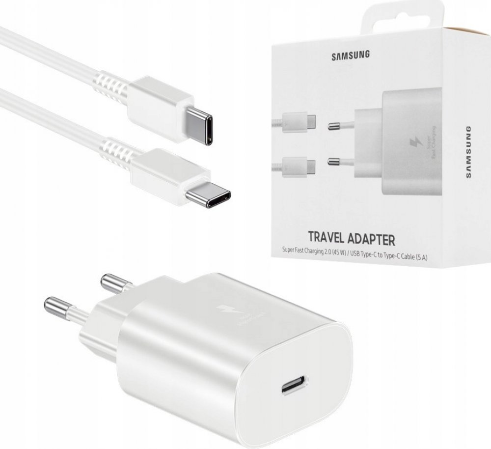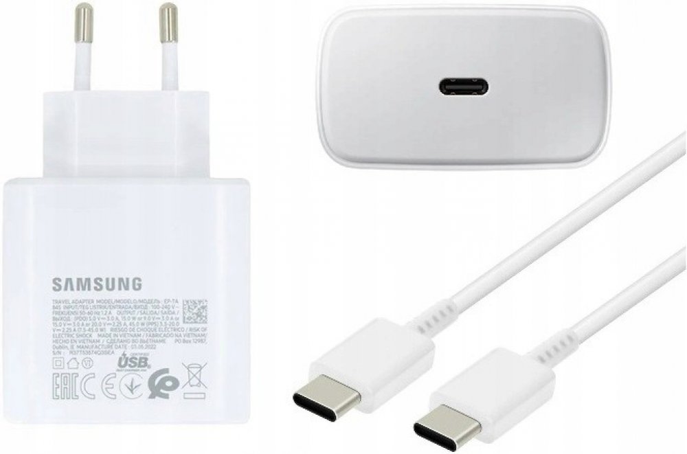 Samsung cestovní nabíječka do sítě s USB-C výstupem a maximálním výkonem 45W.