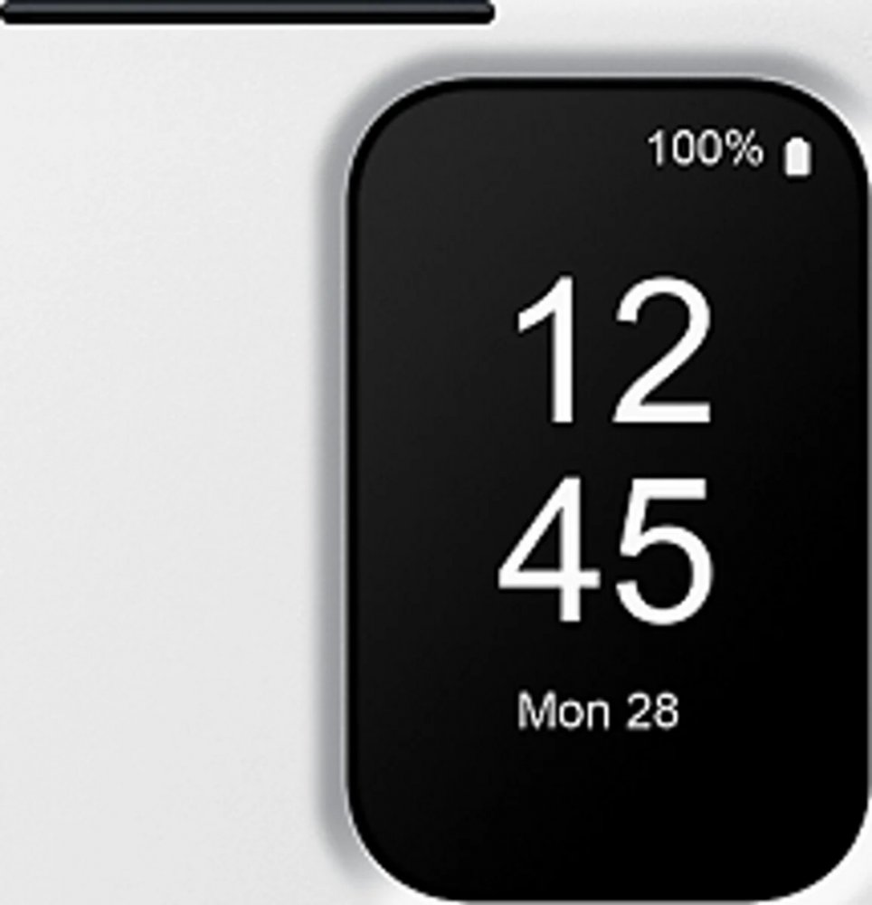 - průzor na krytu pro zobrazení notifikací, času nebo předpovědi počasí