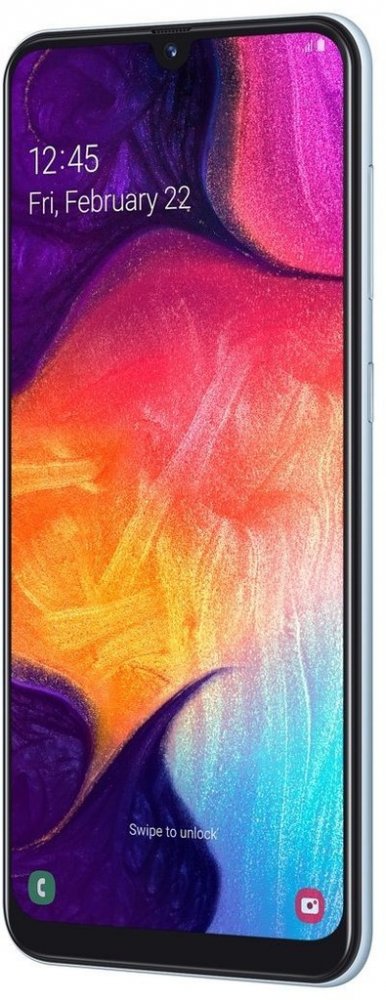 Dotykový Super AMOLED displej telefonu Samsung Galaxy A50 má velikost 6.4" a rozlišení 2340 x 1080 bodů. Základem přístroje je 8jádrový procesor Exynos 9610 s frekvencí až 2.3 GHz doplněný o 4 GB operační paměti, interní pamětí s kapacitou 128 GB a pro další rozšíření slotem pro paměťové karty microSD. Přítomen je trojitý zadní fotoaparát 25Mpx AF (F1.7) + 5Mpx FF (F2.2) + 8Mpx FF (F2.2) doplněný o přední 25Mpx FF (F2.0) kameru. Telefon je dále vybaven bezdrátovými technologiemi Bluetooth, Wi-Fi, GPS. Mezi další výbavu patří čtečka otisku prstů v displeji. Umožní využití v sítích 2G, 3G a LTE. Ze základní konektorové výbavy telefon nabídne moderní USB Type-C port a 3.5mm jack pro sluchátka. K napájení slouží baterie s kapacitou 4000 mAh a podporou rychlého nabíjení. Operační systém Android.
