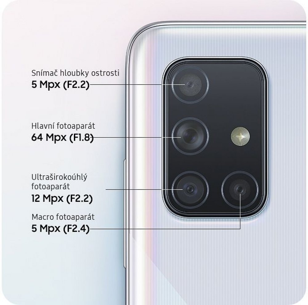 Na pohled krásný telefon, který je nabitý těmi nejlepšími technologiemi. Opravdu veliký displej AMOLED je jako stvořený na sledování filmů nebo hraní her. Při fotografování si budete díky skvělému vybavení připadat jako profesionál a budou tomu odpovídat i výsledné snímky a videa. Také náruživí hráči si s telefonem Samsung Galaxy A71 přijdou na své - už tak špičkový výkon ještě podpoří speciální režim Game Booster, se kterým si hraní užijete ještě o něco více. Vývojáři se postarali i o maximální zabezpečení a to jak hardwaru, tak softwaru. Kromě toho přidali odemykání pomocí otisku prstu, které je bezpečné, rychlé a jednoduché. Zlatým hřebem je asistent Bixby, který už nedočkavě čeká na vaše první povely.