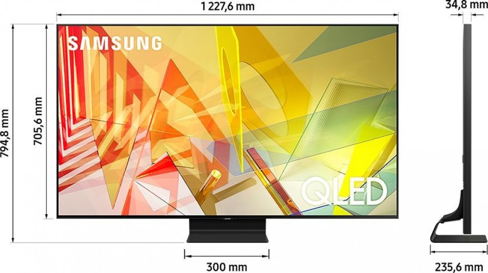 4K QLED televize s rozlišením 3840×2160 o úhlopříčce 138 cm (55"), HDR (HDR10+, HLG), tuner DVB-T/T2 (HEVC/H.265)/C/S/S2, Wi-Fi, Bluetooth, DLNA, HbbTV, přehrávání z USB, záznam vysílání na USB, Timeshift, hlasové ovládání (AJ), webový prohlížeč, O2 TV, Netflix, Skylink Live TV, HBO GO, Skylink Fastscan, dekodér Dolby Digital Plus, vestavěný Woofer. Připojení: 4× HDMI 2.1 (ARC), 3× USB 2.0, 1× LAN...