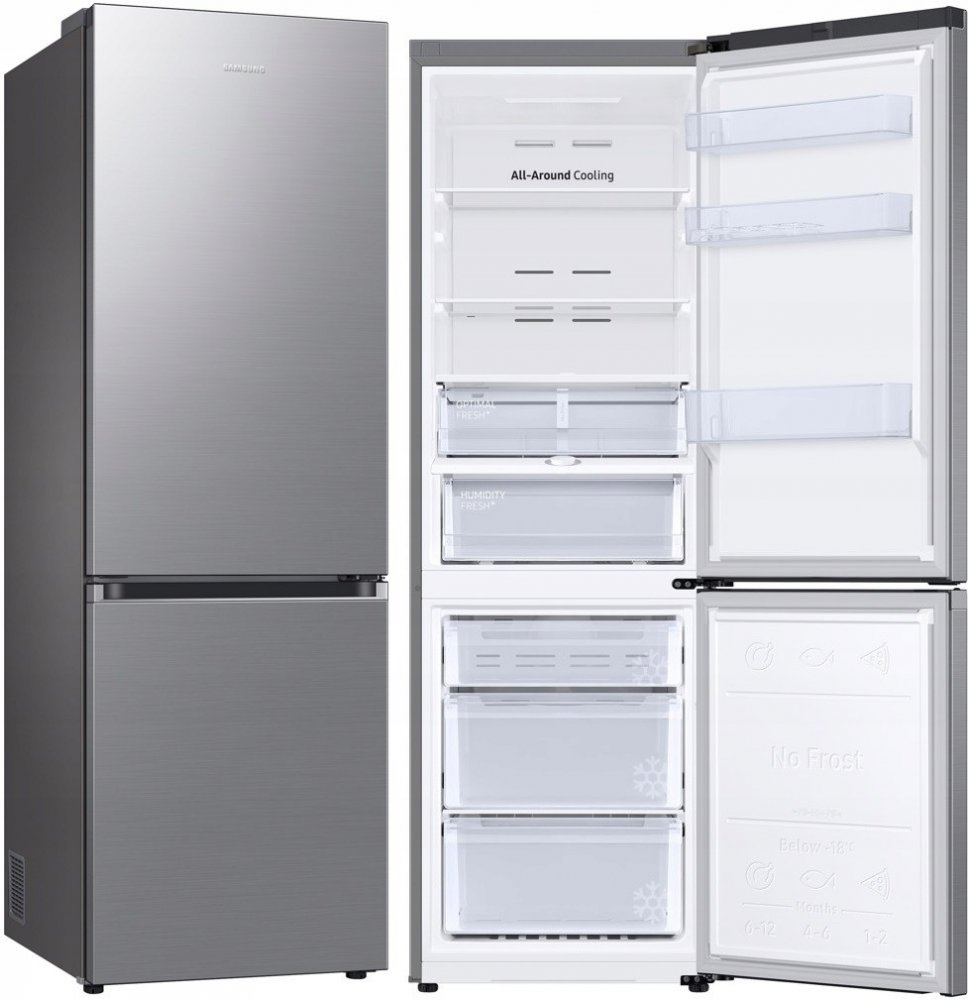 Kombinovaná chladnička Samsung RB34C603CS9/EF Energetická třída C Objem chladničky/mrazničky 230/114 l Roční spotřeba energie 163 kWh Hlučnost 35 dB Mrazící výkon 8 kg/24 hod. Klimatická třída SN, N, ST All Around Cooling Pravý beznámrazový True NoFrost Rychlé chlazení a mrazení Výrobník ledu Barva stříbrná Výška 185,30 cm Šířka 59,50 cm Hloubka 65,80 cm