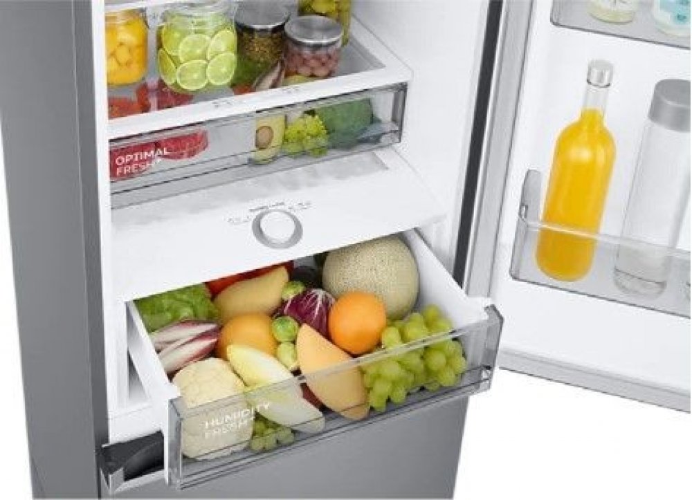 Více místa uvnitř – bez navýšení zvenku Uložte ještě více potravin do extra velké 385litrové chladničky se standardním designem s hloubkou 600 mm, která bude elegantně ladit s okolním vybavením. Díky vysoce účinné izolaci technologie SpaceMax jsou její stěny mnohem tenčí. Vytváří tak více úložného prostoru, aniž by vyčnívala z pracovní plochy. Rovnoměrné chlazení od jednoho rohu ke druhému Ujistěte se, že je jídlo správně vychlazené – ať už je uložené kdekoli. Funkce All-Around Cooling ochlazuje každou přihrádku rovnoměrně od jednoho rohu ke druhému. Neustále kontroluje teplotu a cirkuluje studený vzduch strategicky umístěnými průduchy. Každá položka na každé polici je chlazená efektivně a zůstává déle čerstvá. Udrží potraviny v chladu Udržujte jídlo čerstvé, i když často otevíráte a zavíráte dveře chladničky. Kovová chladicí deska v zadní stěně pomáhá udržovat optimální vnitřní teplotu. Zachovává ch True No Frost - nevytváří námrazu a šetří energii Optimal Fresh - zásuvka pro uchování potravin Humidity Fresh - zásuvka pro čerstvé ovoce a zeleninu Metal Cooling - pomáhá udržovat optimální vnitřní teplotu Celkový objem 390 l 10 let záruka na invertorový motor
