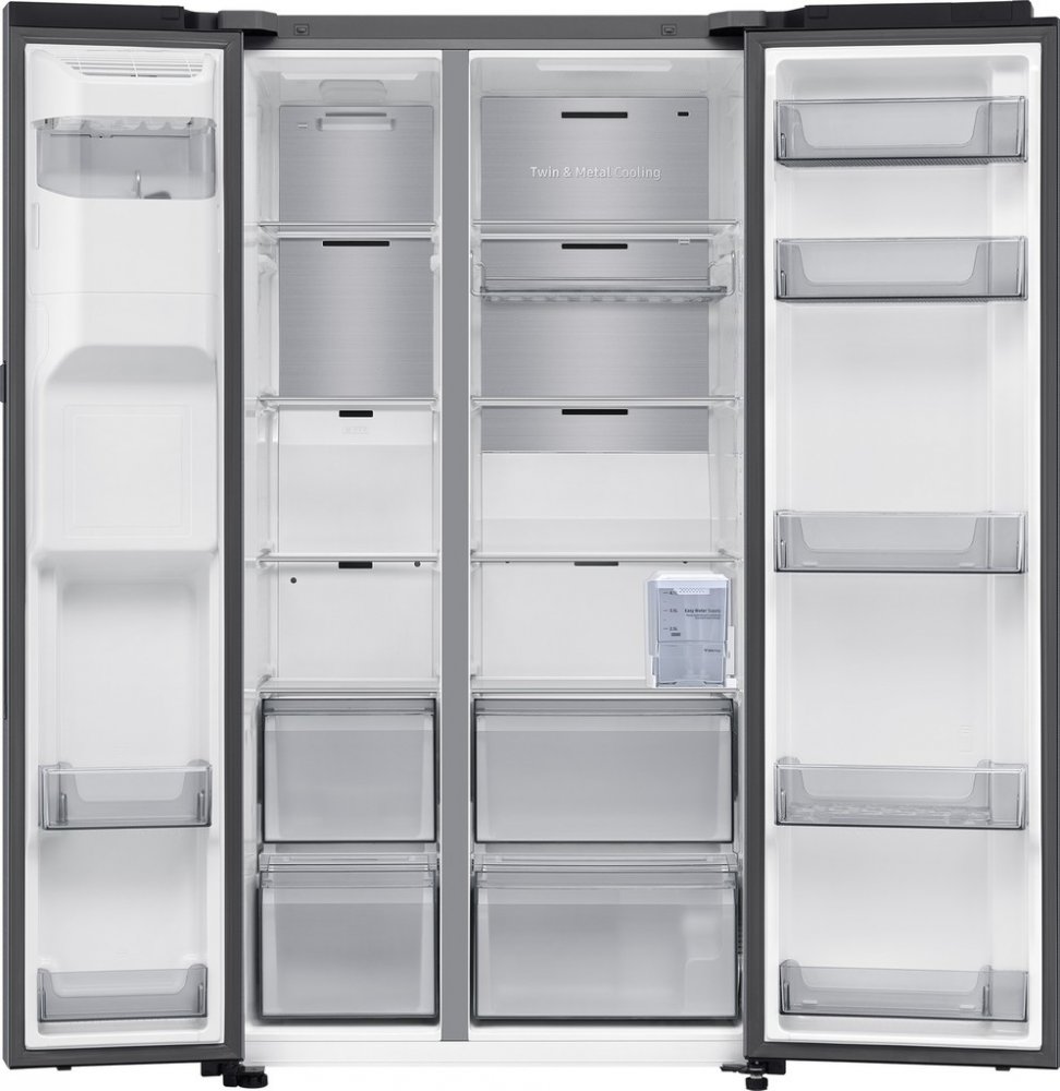 Spousta místa na rodinné dobroty SmartThings jako dálkový ovladač k chladničceSpravujte různé funkce chladničky SAMSUNG RS80F67KCTEO v mobilní aplikaci SmartThings. Kromě základního nastavení teploty získáte komplexní přehled o spotřebě a užitečné tipy pro zvýšení energetické úspory. V případě potřeby máte také neomezený přístup k manuálu a zapnout můžete i upozornění na nedovření dveří nebo na pravidelnou výměnu vodní filtru. Vše, co k tomu budete potřebovat je chytrý telefon a stabilní Wi-Fi připojení. Virtuální asistent BixbyHlasový asistent Samsung Bixby zodpoví vaše otázky, pomůže vám s nastavením lednice a navrhne funkce, které zajistí co nejdelší trvanlivost potravin. Aktuálně vylepšená verze dokáže dokonce splnit více příkazů naráz. Asistent Bixby není v českém jazyce dostupný. *Bixby je virtuální hlasový asistent Internetu věcí (IoT) společnosti Samsung. Dostupnost jeho služeb se může lišit v závislosti na zemi, jazyku a dialektu. **Hlasové příkazy jsou podporované v...