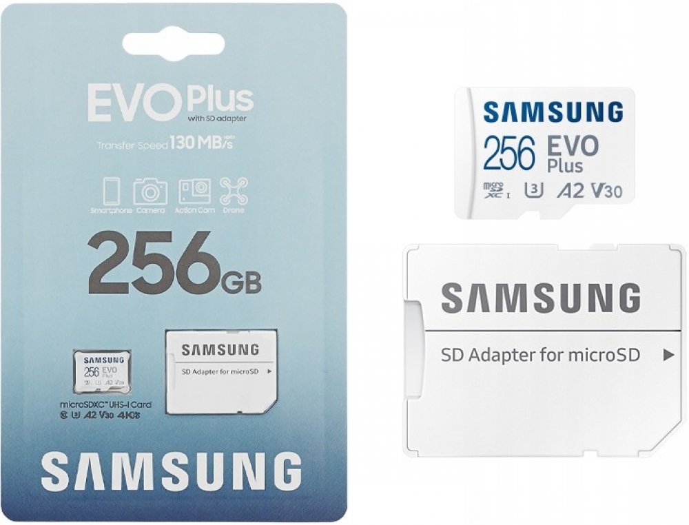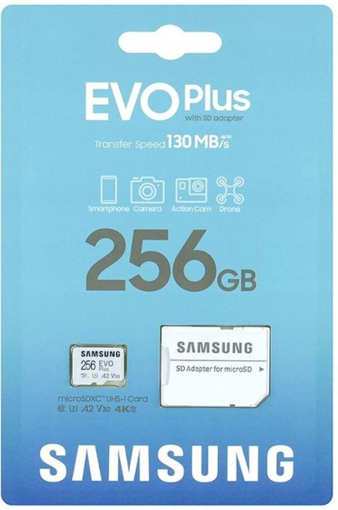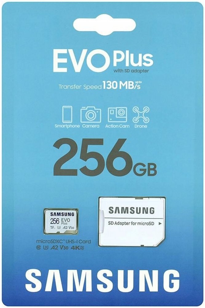 256 GB Samsung microSD 130 MB/s 60 MB/s Class 10 UHS-I U3 V30 A2