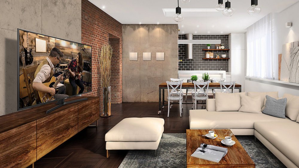 Moderní elegance televizoru Samsung přirozeně zvýrazní vkusný design vašeho stylového interiéru.