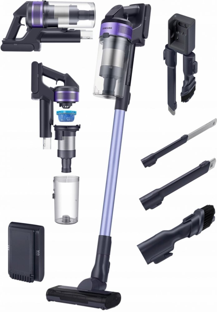Samsung tyčové 0.8 l teleskopické fialové bezsáčkové suché akumulátorové HEPA denní rychlý úklid 86 dB 410 W 2.3 kg 150 W velmi snadné (<2.5kg) Li-Ion 40 min 3.5 hod 2000 mAh nízká (bezsáčkový nebo omyvatelné) velmi nízké (bezsáčkový) rozšířené: 3-4 nástavce