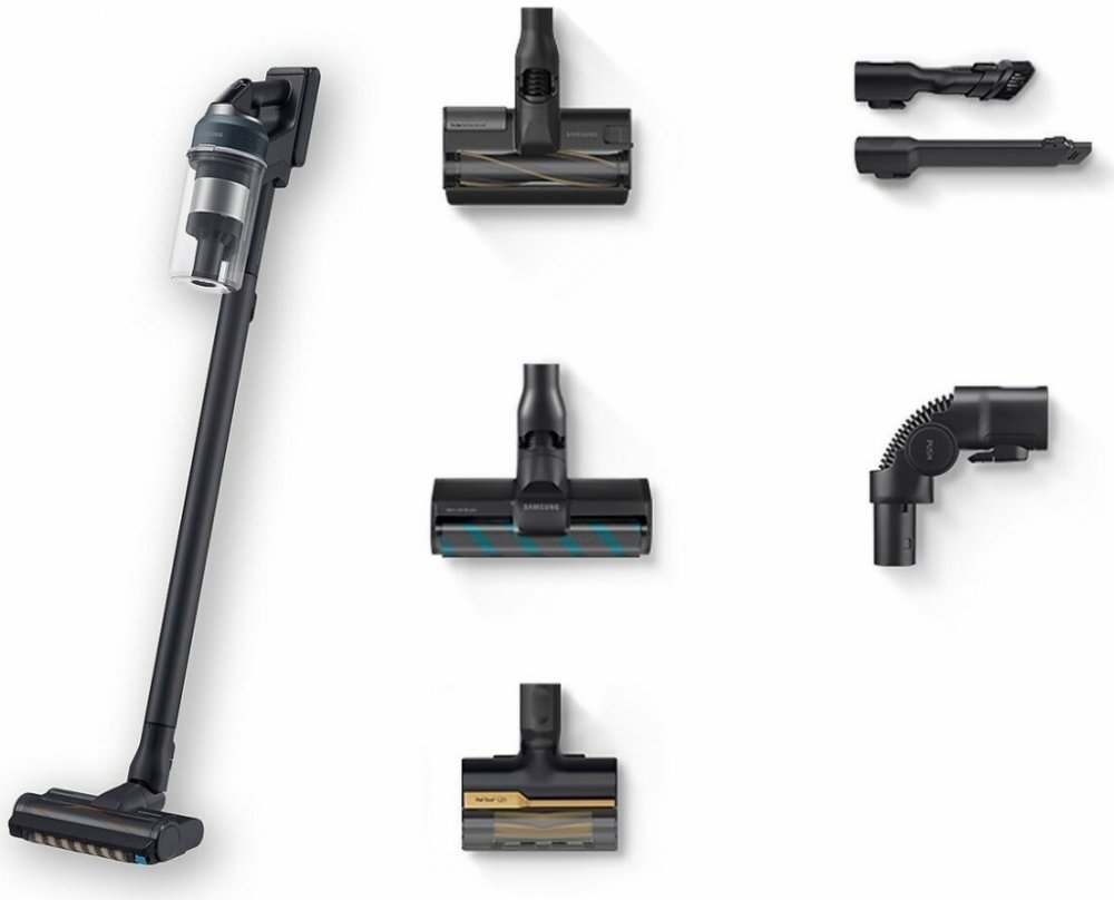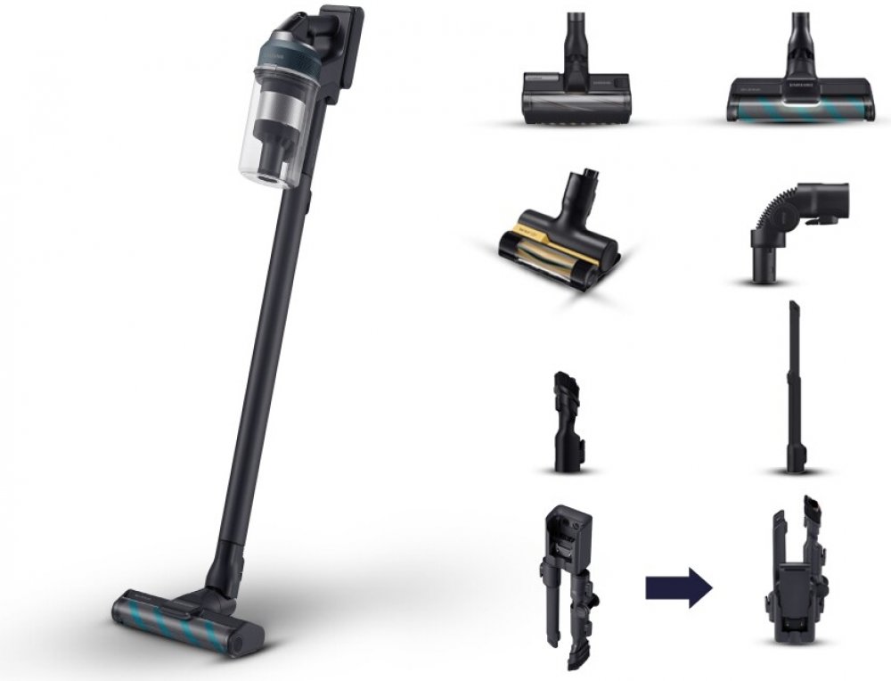 Samsung tyčové 0.8 l 0.8 l černé bezsáčkové suché akumulátorové denní rychlý úklid 86 dB 580 W 2.7 kg 210 W běžný byt (2-3 pokoje) snadné (2.5-4kg nebo lehký síťový) nevhodný (>78dB) zachytí až 99,999 % prachu a alergenů speciální pro zvířata (motorický kartáč + mini nástavec) nabíjecí stojan s úložištěm Li-Ion 60 min 1 nízká (bezsáčkový nebo omyvatelné) hygienické (bezdotykové vysypání) velmi nízké (bezsáčkový) standardní rozšířené: 3-4 nástavce standardní ovládání