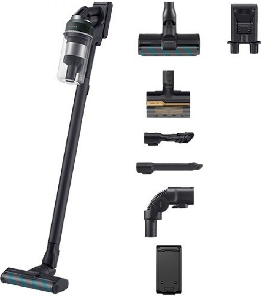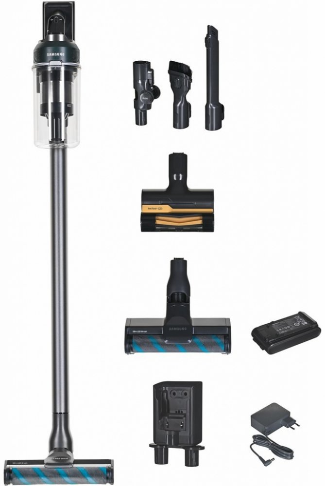 Samsung tyčové 0.8 l 0.8 l černé bezsáčkové suché akumulátorové mikrofiltry denní rychlý úklid 86 dB 580 W 2.43 kg 210 W běžný byt (2-3 pokoje) velmi snadné (<2.5kg) nevhodný (>78dB) zachytí 99,999 % prachových částic speciální pro zvířata (turbo + hubice) nabíjecí stanice 2 v 1, možnost montáže na zeď Li-Ion 60 min 3.5 hod 1 minimální (bezsáčkový + omyvatelné) standardní vyprázdnění nádoby žádné (bezsáčkový + omyvatelné) standardní kompletní sada: 5+ nástavců (včetně Slim LED a Pet Tool+) ovládání přes LCD displej