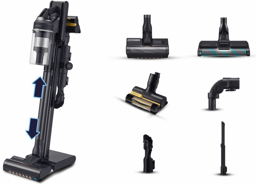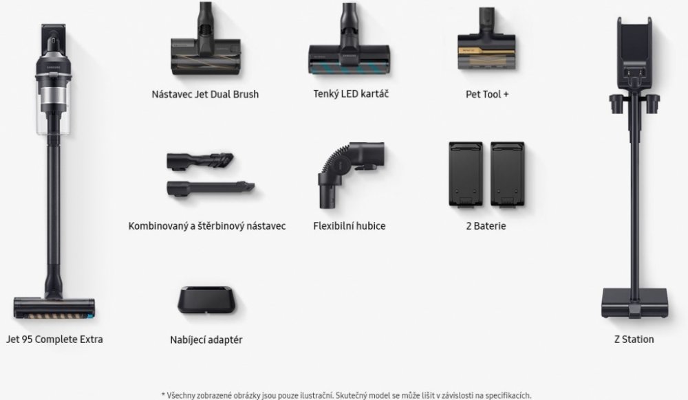 Samsung tyčové 0.8 l 0.8 l teleskopické černé bezsáčkové suché akumulátorové HEPA Jet 95 Complete Extra denní rychlý úklid 86 dB 580 W 2.51 kg 210 W snadné (2.5-4kg nebo lehký síťový) nevhodný (>78dB) zachytí 99,999 % prachu a alergenů speciální pro zvířata (Pet Tool + a turbokartáč) volně stojící nabíjecí stanice Li-Ion 120 min 3.5 hod 2 nízká (bezsáčkový nebo omyvatelné) standardní vyprázdnění nádoby velmi nízké (bezsáčkový) šetrné hubice pro citlivé podlahy kompletní sada: 8+ nástavců standardní ovládání