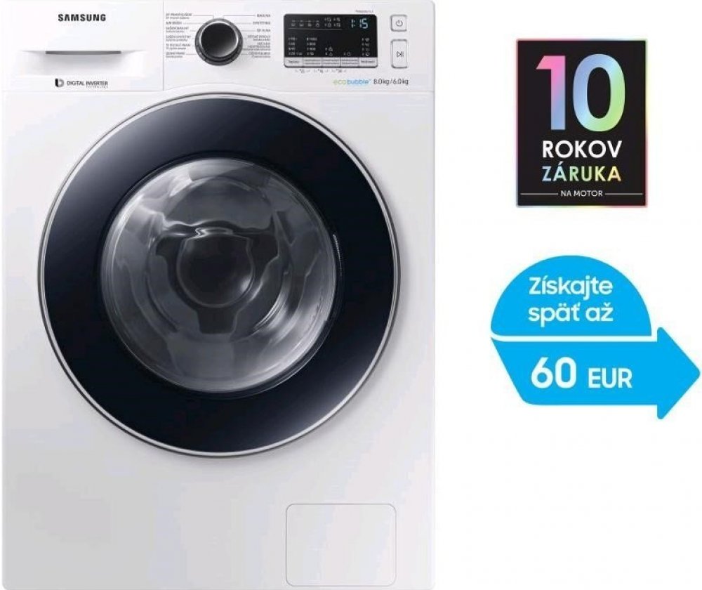 Samsung 8 kg 54 dB 62 dB přední bílé 6 kg A A A 1.04 kWh 5.44 kWh 120 60 cm 63 kg 14