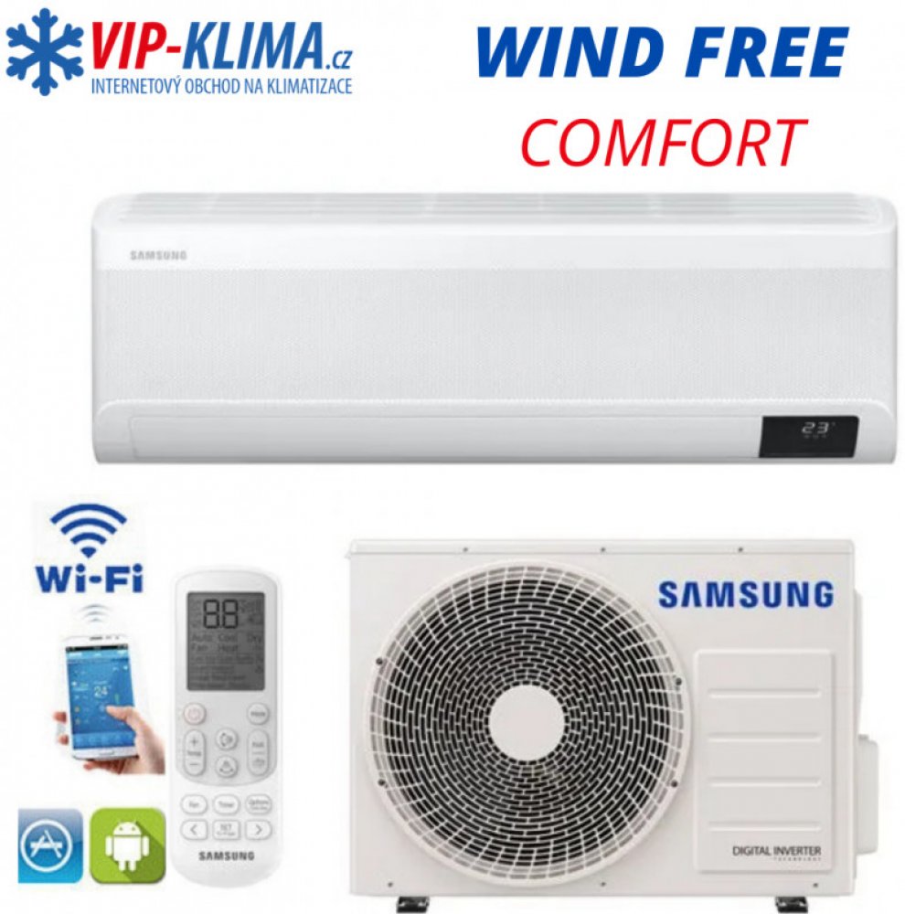 Samsung Wind-Free Comfort 5 kW Nástěnná klimatizace určená pro chlazení i vytápění. Uvedená cena je pouze za zboží, nabízíme i výhodnou variantu s montáží již v ceně – klikněte sem . Funkce: Wind-Free režim – 23 000 mikrootvorů pro jemné a rovnoměrné distribuování vzduchu po celé místnosti, a zachovává tak příjemnou úroveň chladu bez jakéhokoli proudění vzduchu. Rychlé chlazení – Rychle ochladí ce...