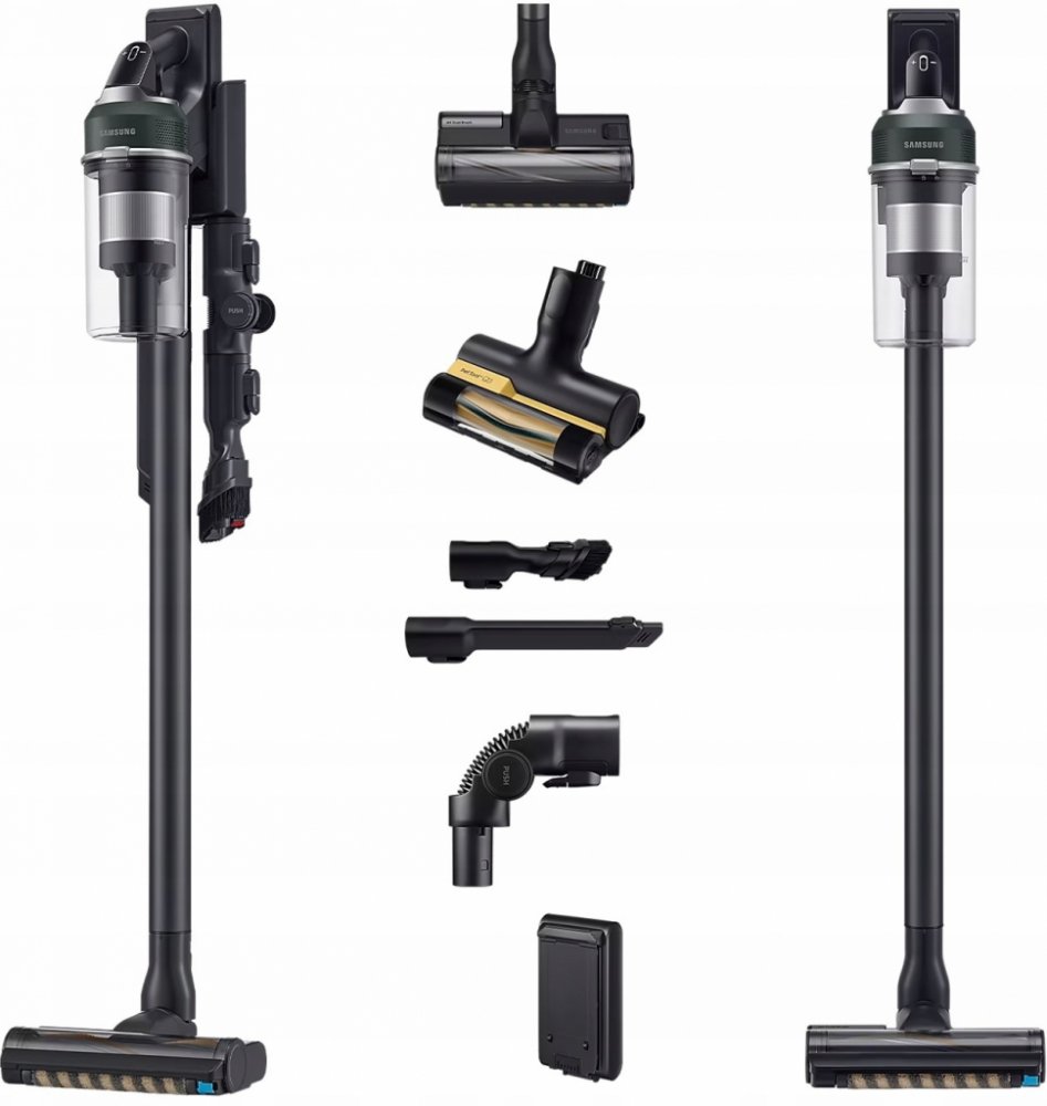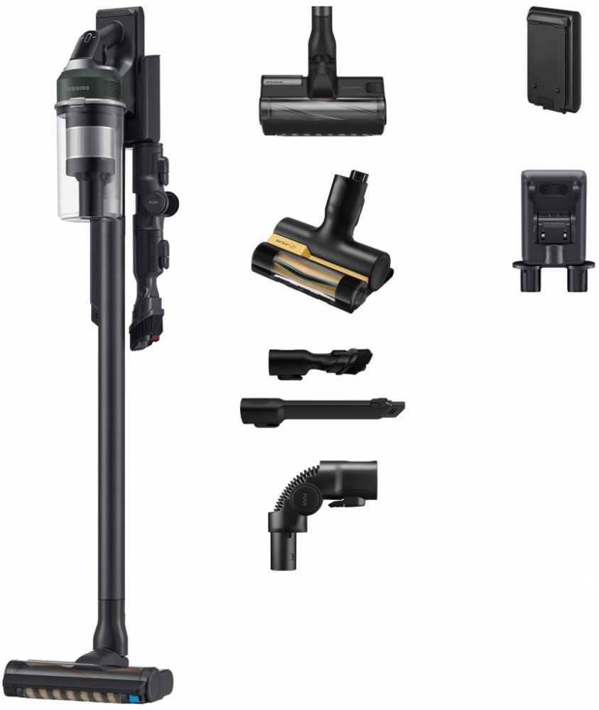 Samsung tyčové 0.8 l černé bezsáčkové suché akumulátorové denní rychlý úklid 86 dB 580 W 2.63 kg 210 W běžný byt (2-3 pokoje) snadné (2.5-4kg nebo lehký síťový) nevhodný (>78dB) zachytí 99,999 % prachu a alergenů speciální pro zvířata (mini kartáč) nástěnný držák s nabíjením Li-Ion 60 min 3.5 hod 1 minimální (bezsáčkový + omyvatelné) žádné (bezsáčkový + omyvatelný) standardní kompletní sada: 5+ nástavců standardní ovládání