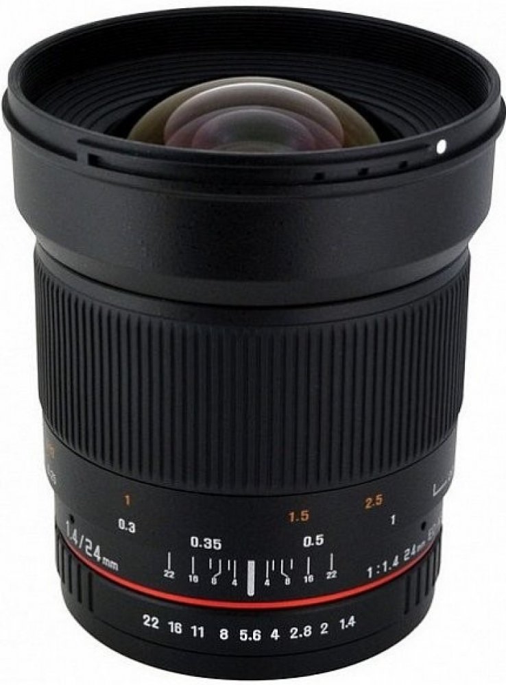 Samyang 24mm f/1.4 ED AS IF UMC je vysoce kvalitní širokoúhlý objektiv s vynikající světelností, určený pro fotoaparáty s full frame nebo APS-C snímačem. Je ideální pro full frame fotoaparáty, představující prvotřídní širokoúhlý objektiv pro fotografování ulic, krajin a architektury, a to i za zhoršených světelných podmínek.