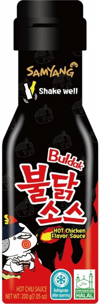 Velmi pálivá omáčka s kuřecí příchutí buldak. Vhodné na maso, burgery, do polévky na nudle.
