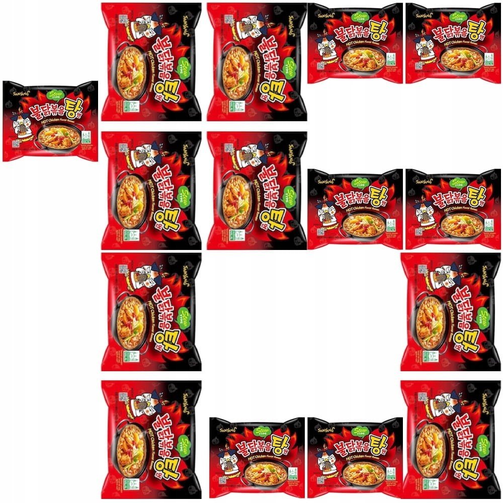 Polévkový základ (25,5%): Voda, cukr, extrakt z červené papriky, prášek z chilli papriček, sójová omáčka, sůl, glutamát monosodný (E621), prášek ze sójové omáčky, tapiokový škrob, zvýrazňovače chuti (disodné ribonukleotidy E635), česnek, sójový olej, pasta z červené papriky, paprika v prášku, kvasnicový prášek, prášek z černého pepře.