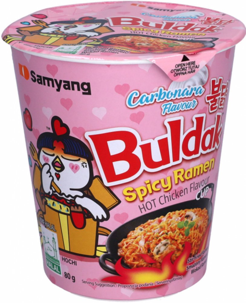 Popis: Těstoviny polévka ramen ostré kuřecí carbonara 80 g v kelímku od firmy Samyang. Velmi chutná verze ostré polévky chicken hot ramen ve verzi carbonara. Kuře a sýry jsou velmi populární kombinací, která vytváří lahodnou carbonaru. Polévka je mnohem lepší než ty, které můžeme potkat v Polské obchodech s potravinami. Vysoce kvalitní chutné těstoviny a lahodná omáčka.